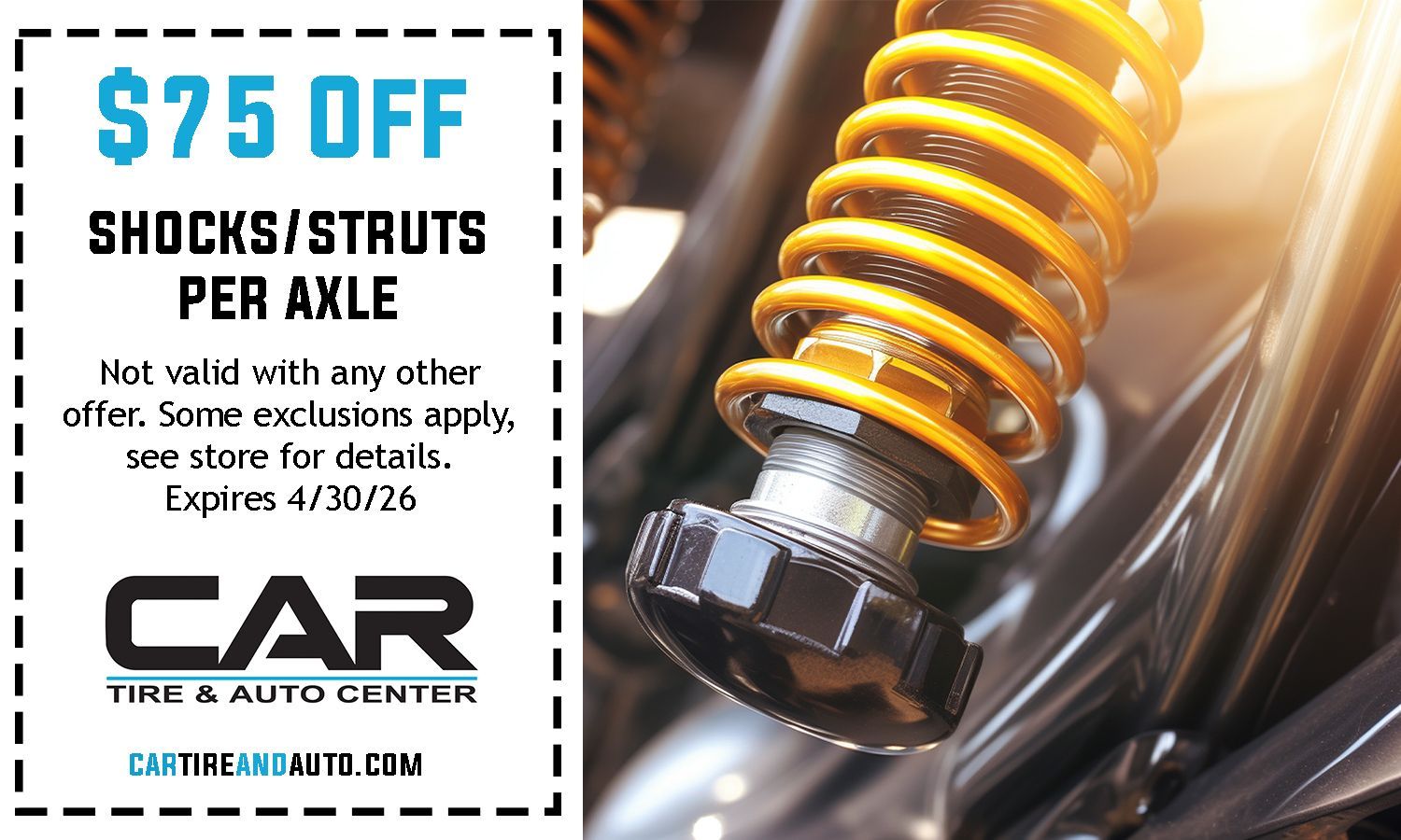 At CAR Tire & Auto, we are committed to providing high quality service at competitive prices. Take advantage of our latest specials, including discounted oil changes and savings on repair services, to keep your vehicle running smoothly while staying within your budget. Our offers are updated regularly, so be sure to check back often for new coupons and promotions on the services you need most. Quality auto care at a great value is always our priority.